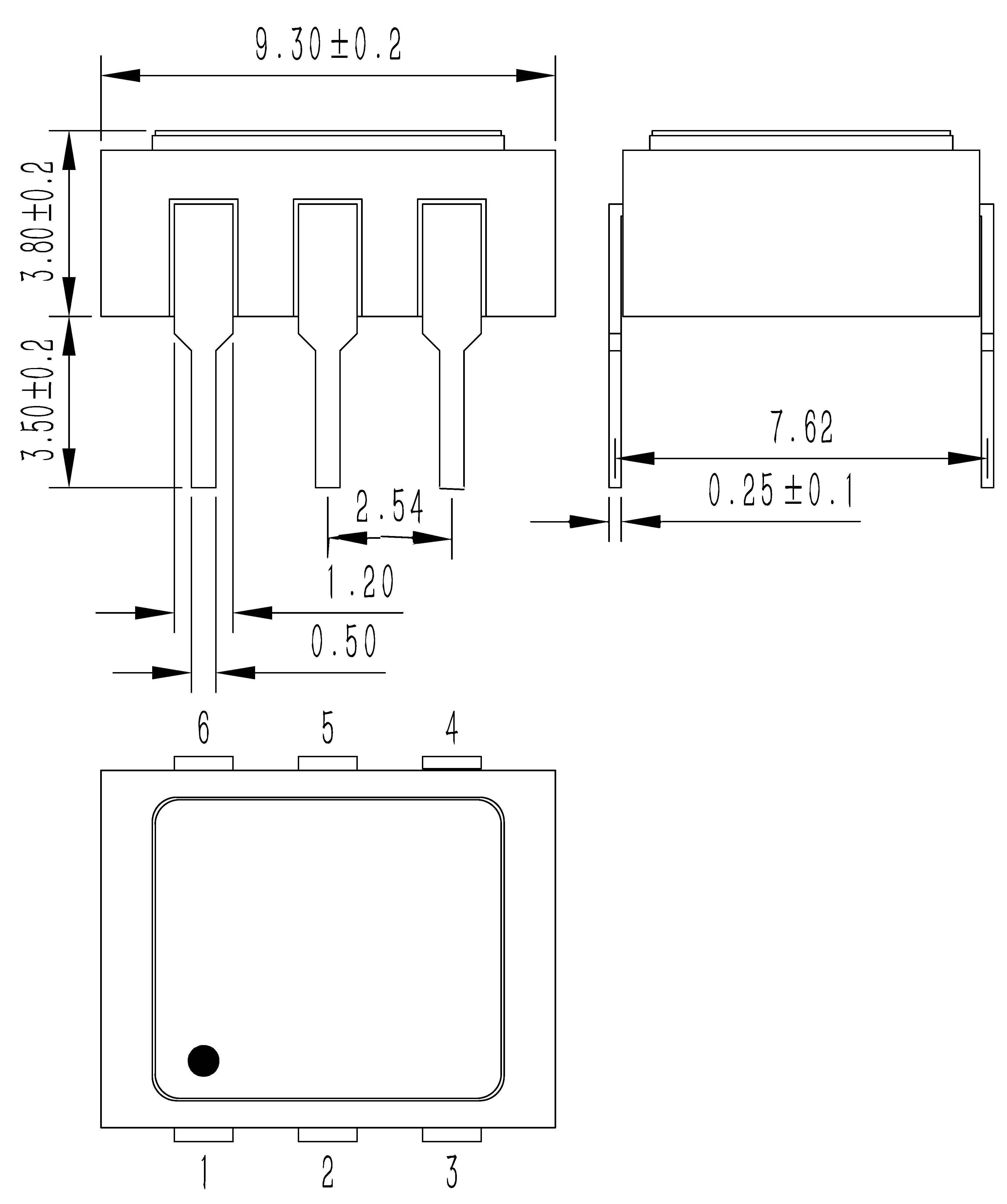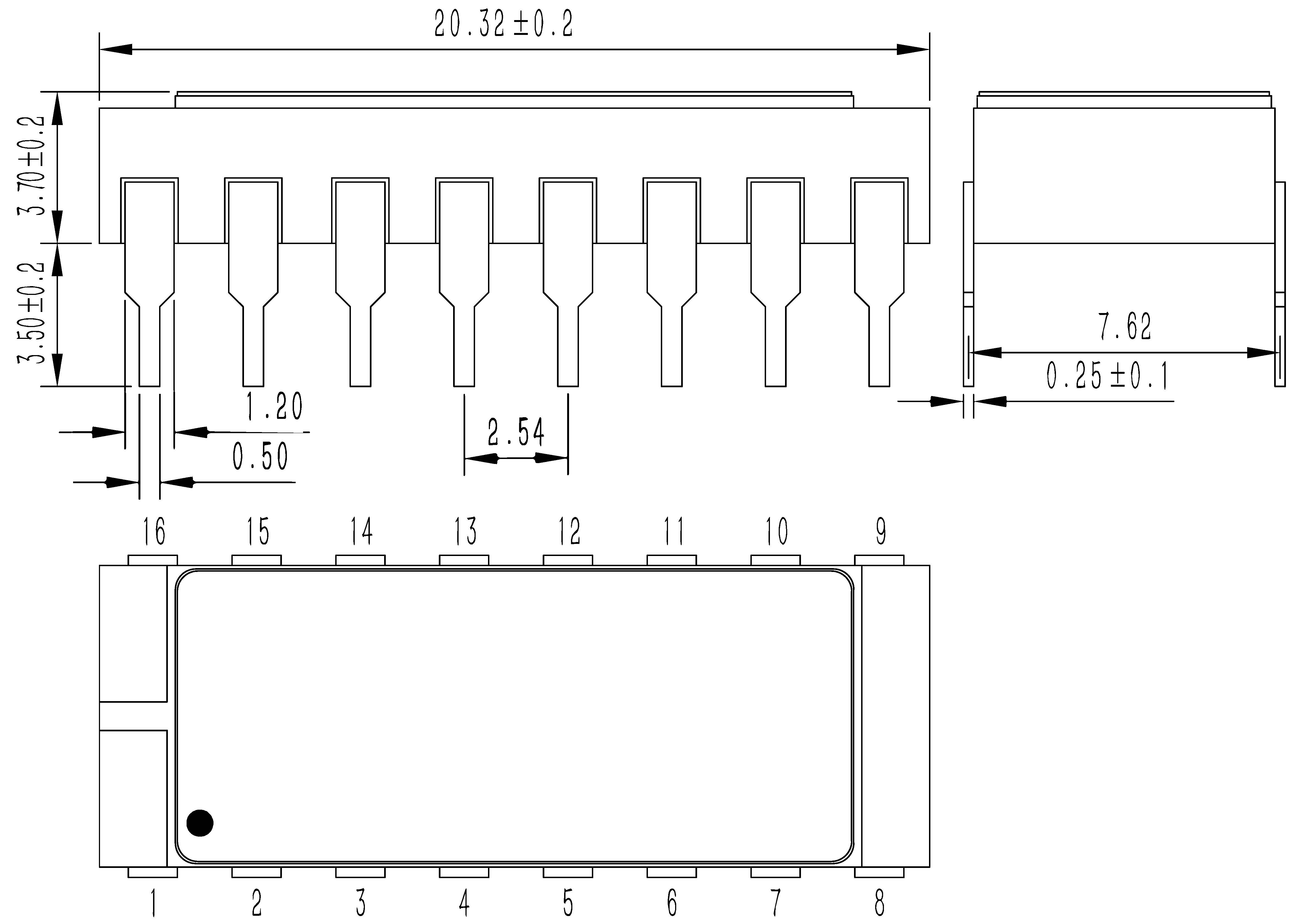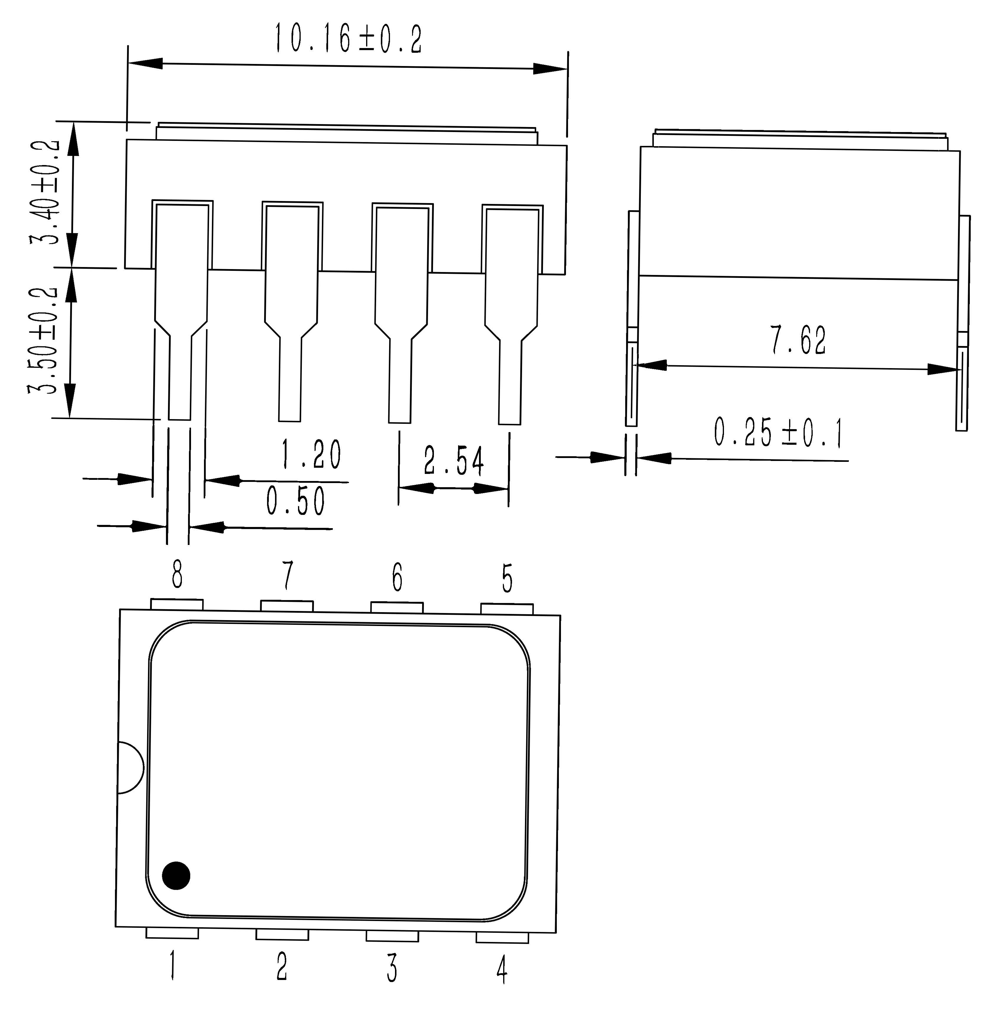 | Часть №. | Упаковка | Размер (мм) | Определение контакта (вид сверху) |