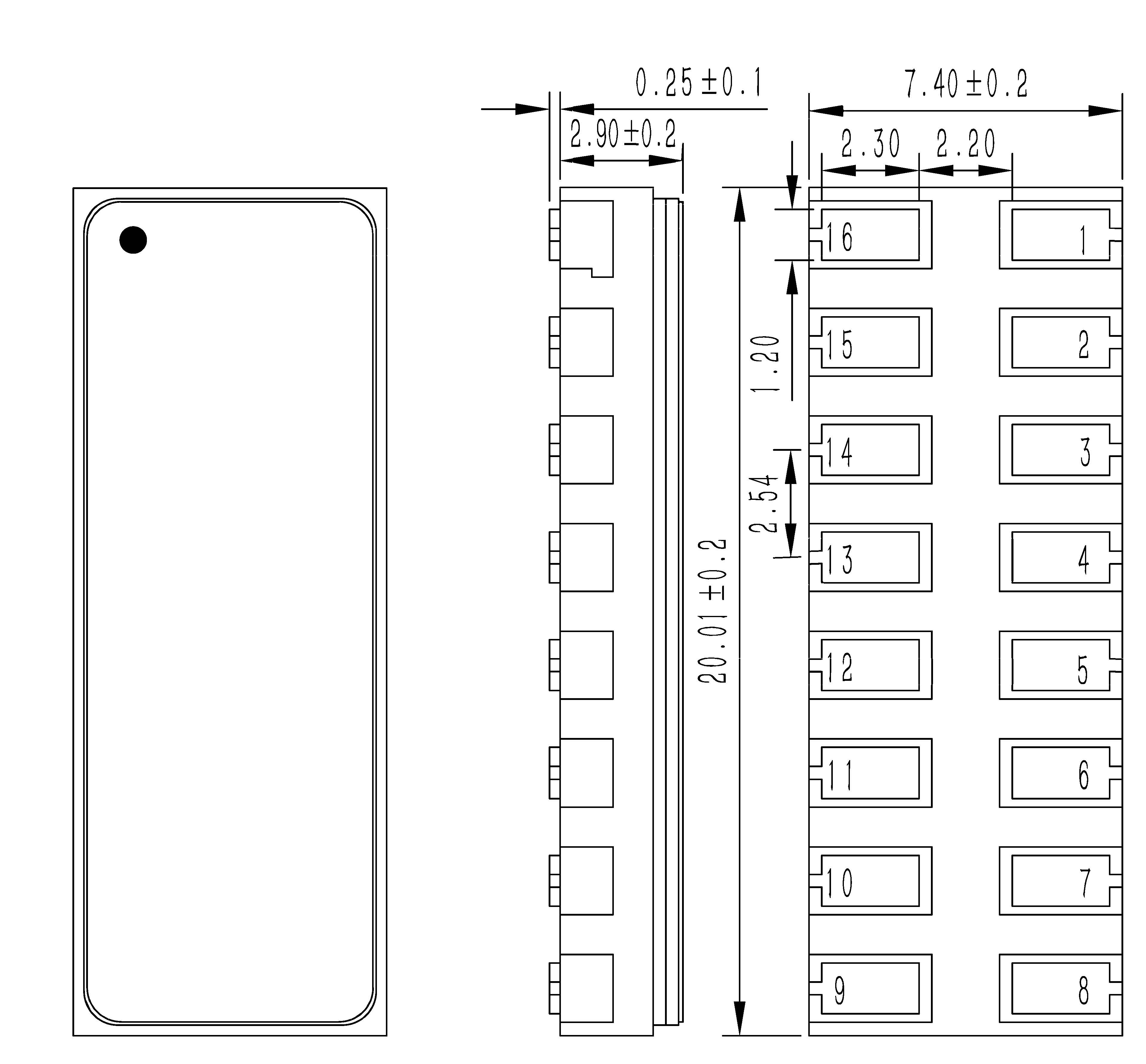 | Модель | Упаковка | Размер (мм) | Определение контакта (вид сверху) |
